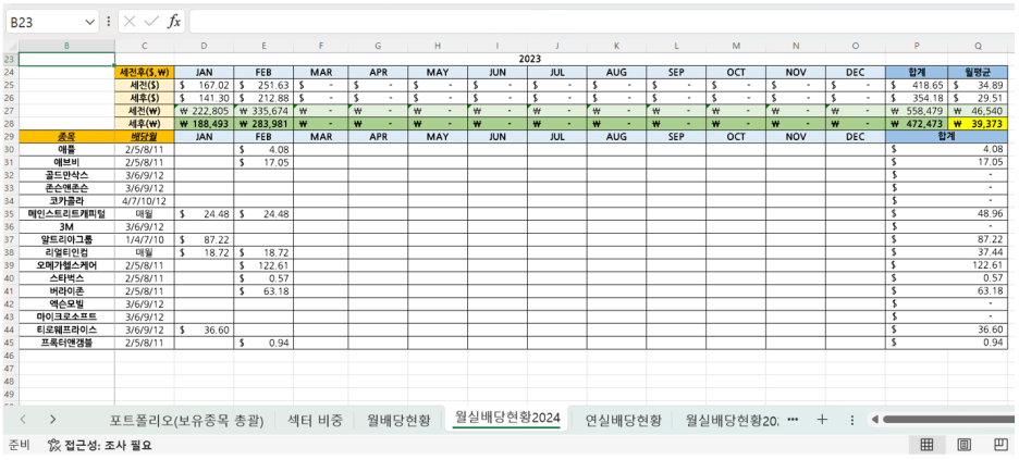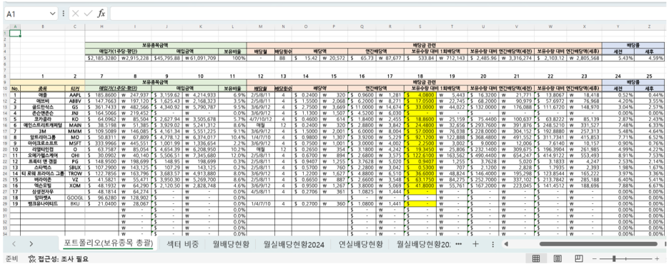 [미국 배당주 관리 엑셀 파일]